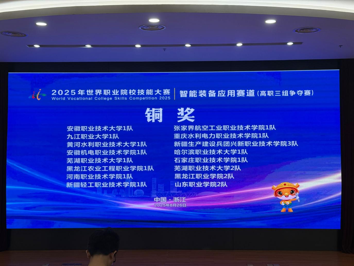 8月20日至26日,2025年世界职业院校技能大赛总决赛在浙江杭州开赛。伟德国际1946源于英国智能制造技术学院学子捷报频传,在智能装备应用赛道斩获两项铜牌,尽显龙江职教风采。