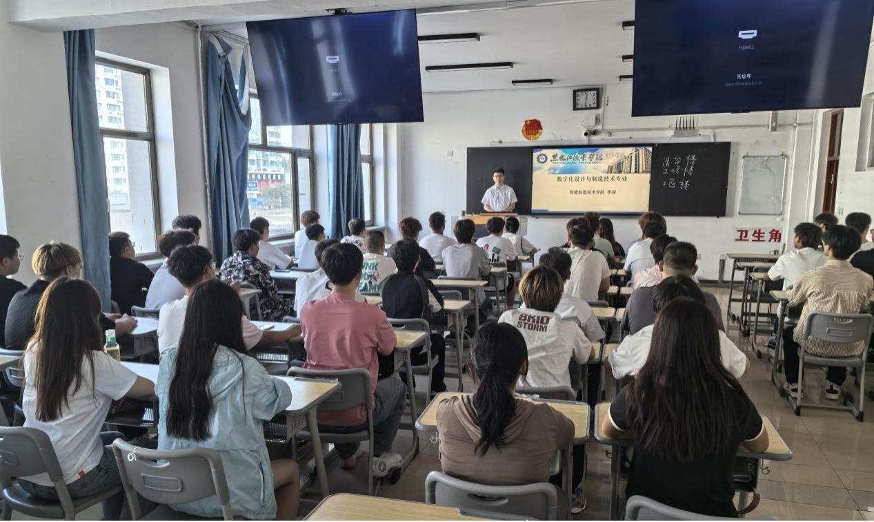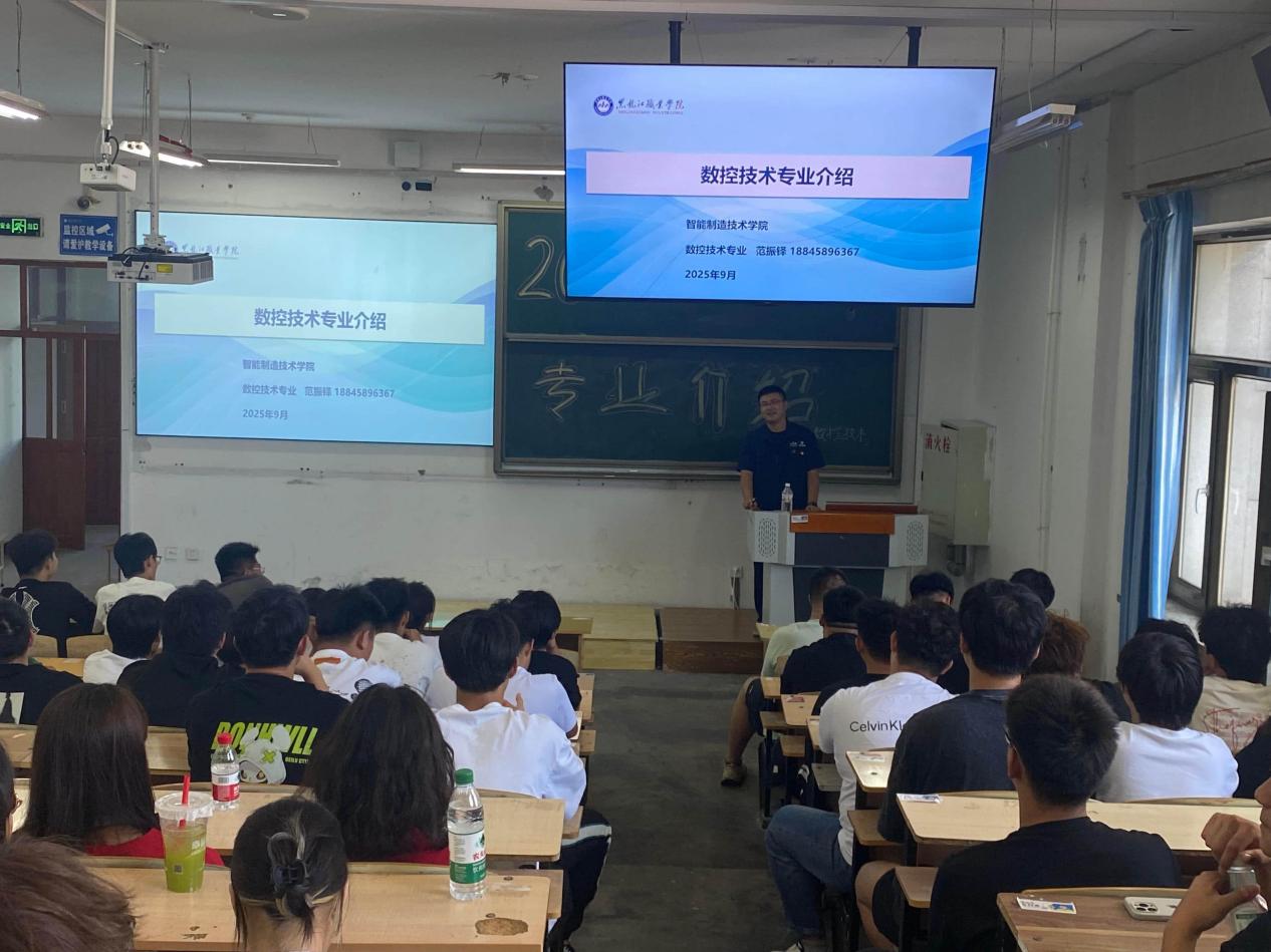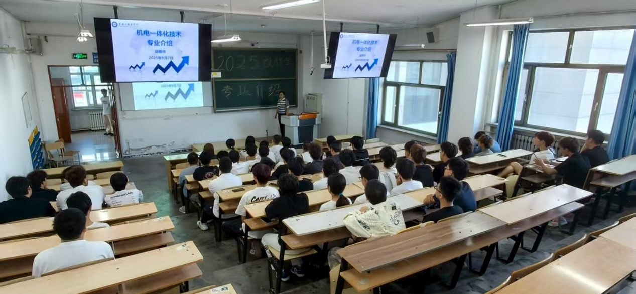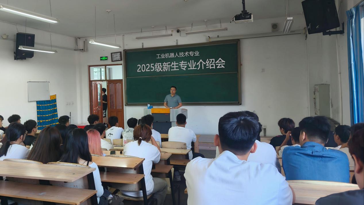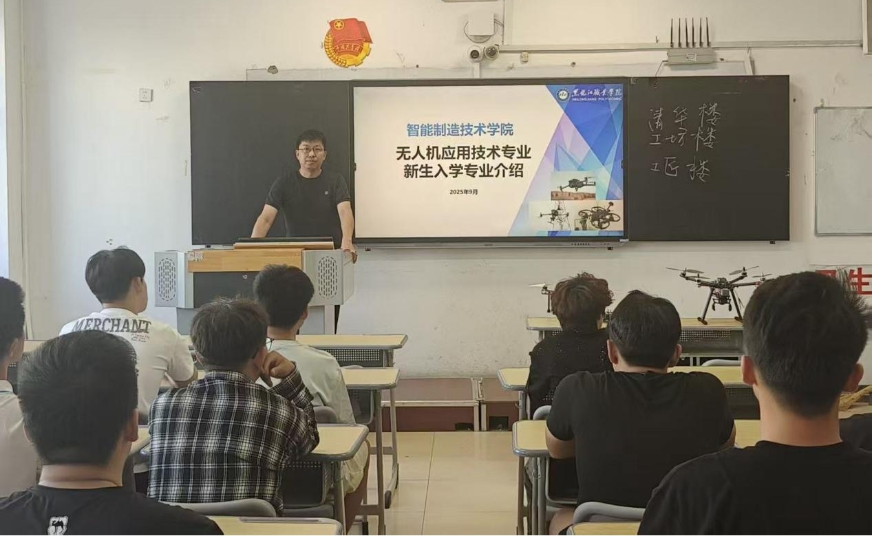 2025年9月8日下午,智能制造技术学院9个专业面向2025级新生开展了专业介绍。本次活动各专业积极筹备,为学生们带来认知专业的第一课。工业机器人技术专业在专业介绍现场播放优秀毕业生视频,让学生从竞赛、升学和就业多角度了解专业;无人机应用技术专业在专业介绍现场邀请企业导师为同学们介绍低空经济、无人机技术及行业应用,并现场为同学们展示无人机飞行操作,让同学们对专业进行全方位的了解;工业互联网应用专业聘请航天科工集团航天云网黑龙江分公司企业高管走进课堂,为学生答疑解惑。