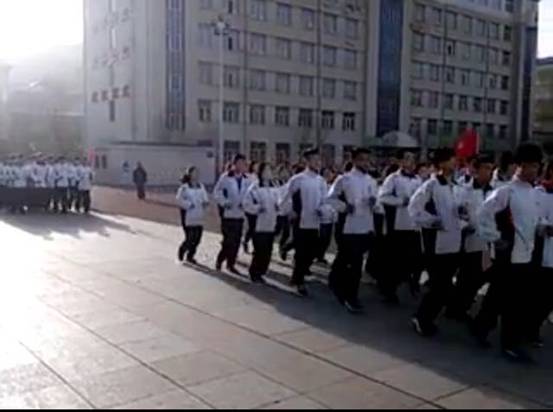 操场上,在军操队与体育部学生的组织下,一群朝气蓬勃的年轻学子们伴随着他们早已熟悉的“一二一”口号声中奔跑在这个属于他们的校园中。看他们整齐的步伐,震天的口号以及那神采飞扬的表情,无不在向我们展示着属于他们这个年龄朝气与力量。两圈半的时间很快就过去了,随着一声“立定”的响起代表着他们这一天早操的结束。就连退场,也井然有序。