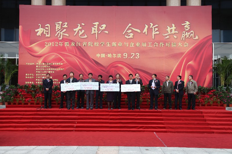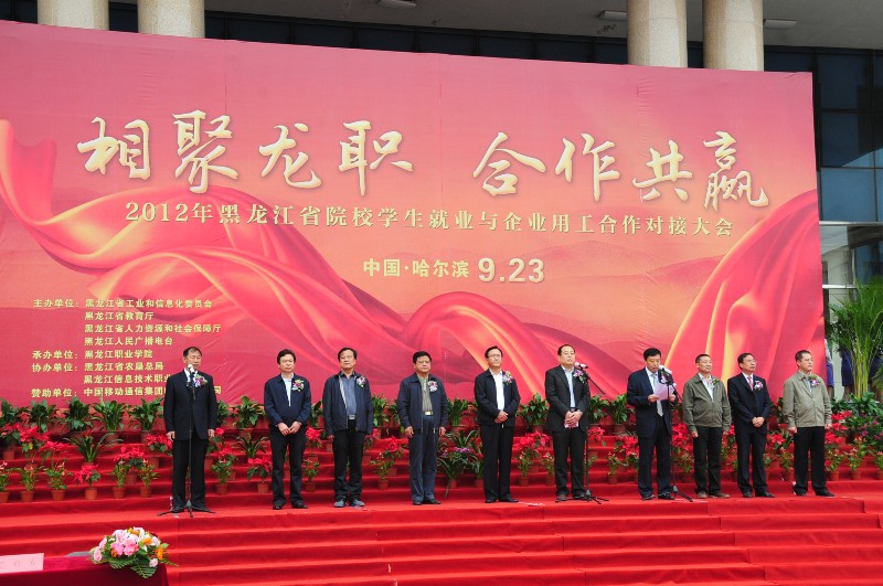 9月23日,由省工信委、省教育厅、省人力资源和社会保障厅、黑龙江人民广播电台联合主办,我院承办的以“相聚龙职、合作共赢”为主题的2012年黑龙江省院校学生就业与企业用工合作对接会在学院隆重举行。省工信委党组书记贲起利、常务副主任庞光明,省人力资源和社会保障厅副厅长董绍林,黑龙江人民广播电台专职编委韩巨生,省农垦总局副局长谭占龙,省教育厅学生处处长张明华,伟德国际1946源于英国书记冯玉龙、院长赵继会,黑龙江信息技术职业学院院长武英举以及中国移动哈尔滨分公司党委书记、总经理潘景波出席大会。262家省内外重点骨干企业和省内101所院校代表及各高校应届毕业生参加此次会议。会议由省工信委纪检组组长王涛同志主持。
