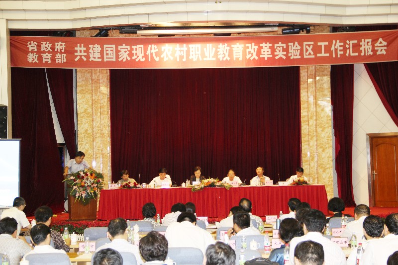 该项目是省部共建我国首个国家现代农村职业教育改革实验区,其主要内容是全面推进现代农村职业教育体系建设,适应农民职业化建设需要,培养高素质技术型、技能型人才;特别是将集团化办学提升到国家制度的高度,为涉农类职教集团发展提供良好的政策环境,引起广大与会者的共鸣与期待。