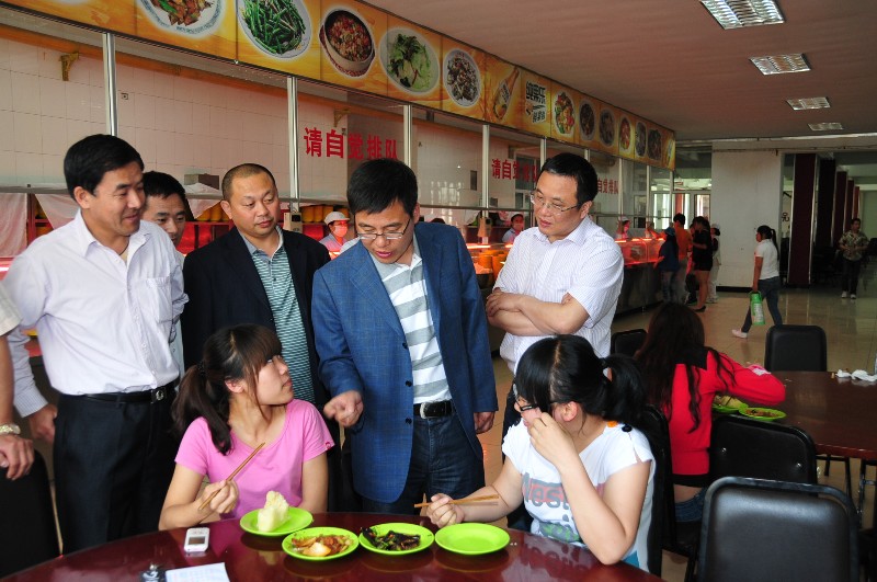 为了进一步加强学院食品卫生安全工作,确保全院师生饮食安全,近日,副院长郑福贵带领有关部门负责人对饮食中心食品安全卫生工作进行了全面检查。着重对饮食中心环境卫生,原材料的购入、清洗、销售过程中的卫生管理,餐具的回收消毒以及剩菜、废油的处理等细节进行了了解和检查,并与就餐学生亲切交流,了解饭菜质量价格和满意度等情况。