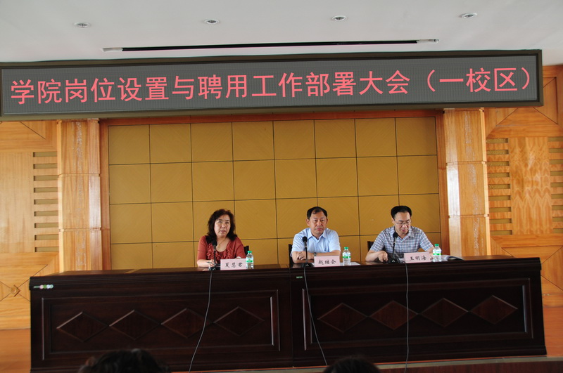 赵继会院长首先强调了此次改革主要目的和重要意义,他指出:学院进行岗位设置与聘用工作是学院深化干部人事制度改革的一项重大举措,也是创新学院管理体制机制、实现从身份管理到岗位管理的重要过程,涉及到全体教职员工的切身利益,事关学院改革、发展和稳定大局;要通过岗位设置优化学院分配制度改革,充分调动各类人员的积极性、主动性和创造性,促进学院优秀人才脱颖而出,为推动学院各项事业的发展提供坚强有力的人才支撑。