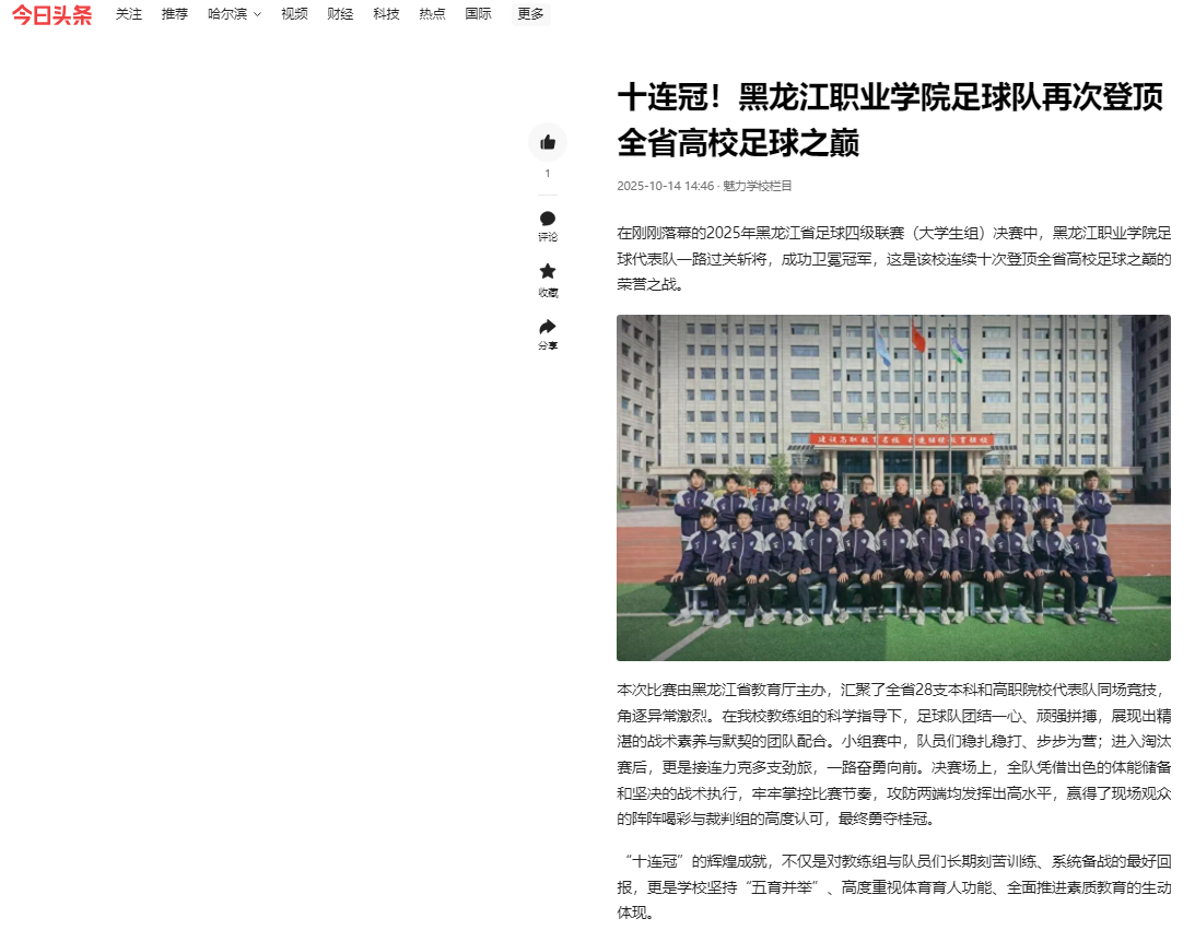 上一篇:【一点资讯】十连冠!伟德国际1946源于英国足球队再次登顶全省高校足球之巅