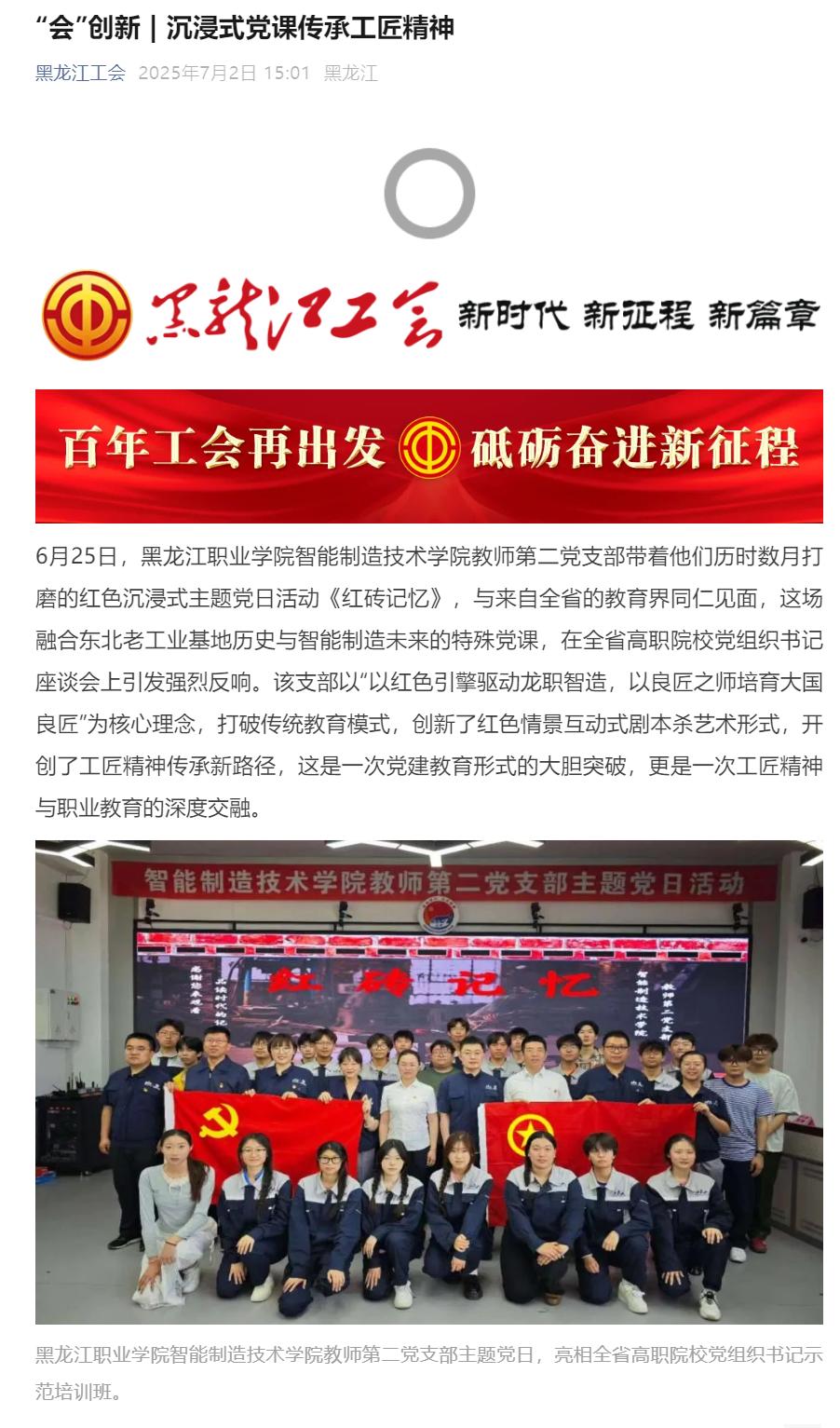 【黑龙江工会】“会”创新 | 沉浸式党课传承工匠精神