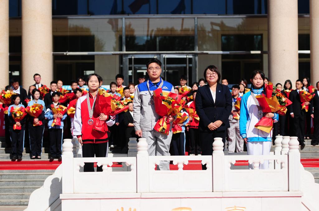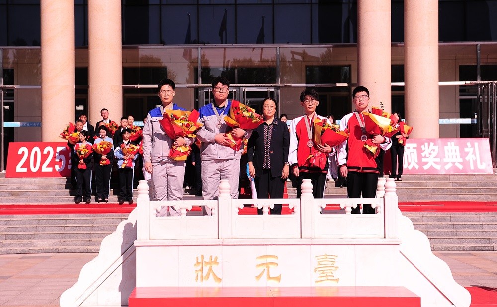 这是一场对卓越的礼赞,也是一次对青春的致敬。9月29日,伟德官网2025学年度“颁龙职奖·登状元台”活动隆重举行。获奖者依次走上红毯,登上状元台。校长王利文,党委副书记杨东辉,副校长吴艳秋、何志鹏,纪委书记陈玉平,副校长王广文,党委委员、组织部部长石明杰分别为国赛金奖、银奖、铜奖获奖代表颁奖,并合影留念。