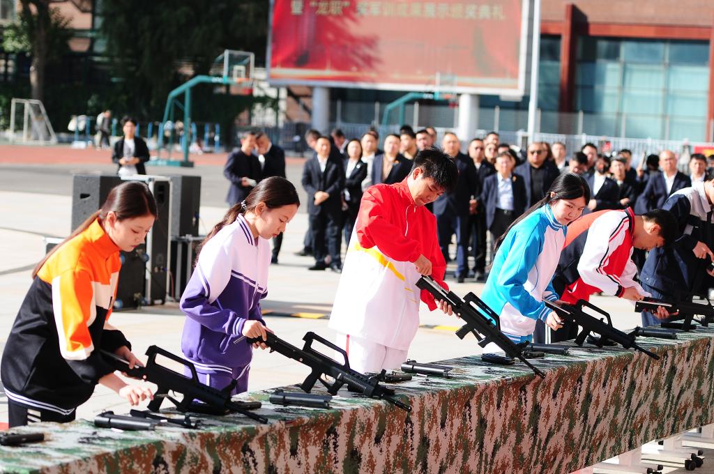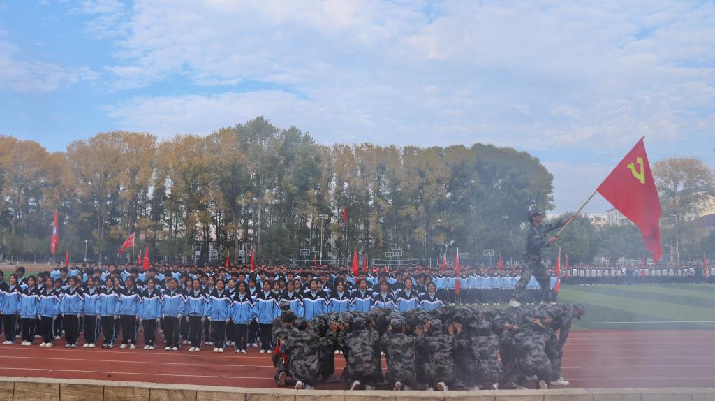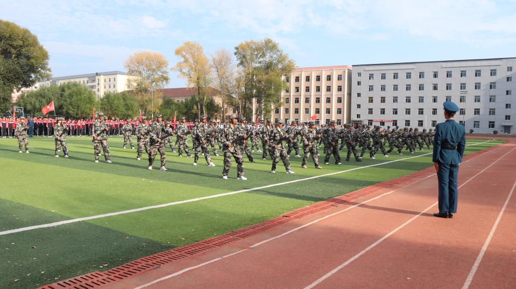 伴随着雄壮的中华人民共和国国歌,大会正式拉开帷幕。当激昂的《分列式进行曲》响彻运动场,学校军训团9个营、53个连队依次通过主席台,接受全场检阅。各营相继展示了刺杀、战术基础动作、擒敌拳、匕首操、战术对抗、枪械组合等军训科目。参训学生步伐铿锵、口号嘹亮、斗志昂扬,全方位展现了此次军训取得的扎实成果,充分彰显了“新龙职人”的青春朝气与坚毅品格。