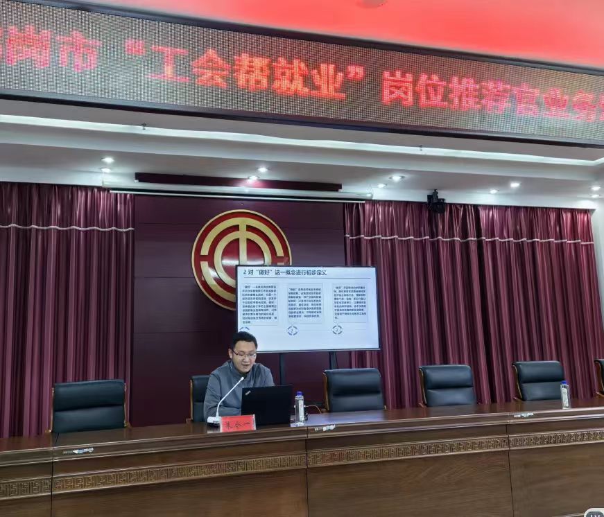 9月19日下午,受省教科文卫体工会委托,学校招生就业指导处大学生职业发展中心副主任朱今一赴鹤岗市,为鹤岗市总工会举办的“工会帮就业”岗位推荐官业务培训班作讲座。