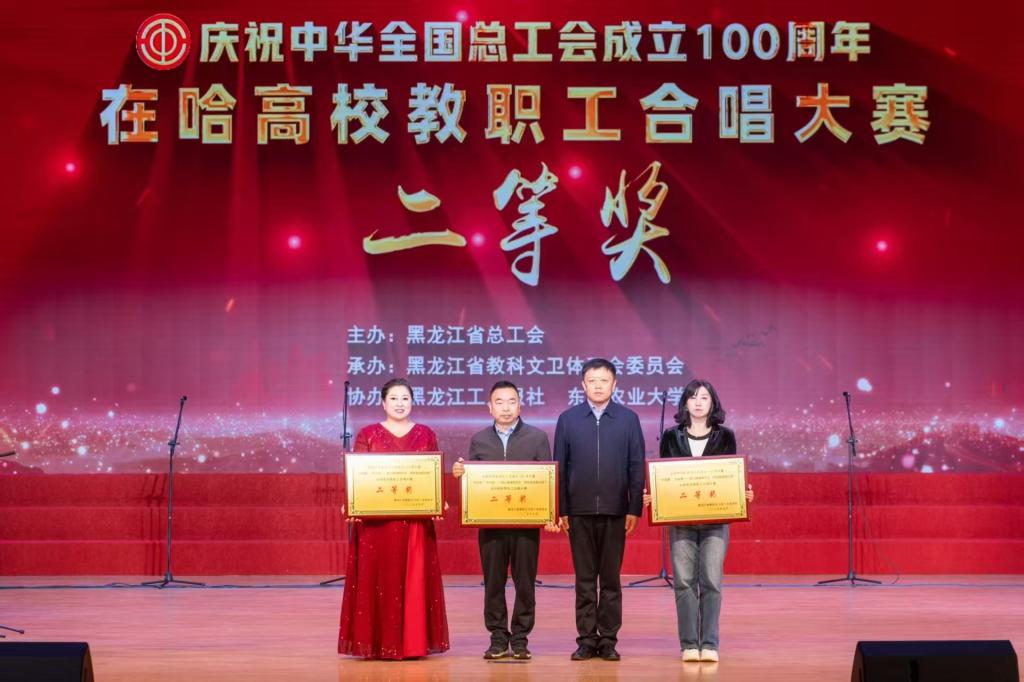 5月16日,庆祝中华全国总工会成立100周年暨“中国梦·劳动美——凝心铸魂跟党走 团结奋进新征程”在哈高校教职工合唱大赛决赛在东北农业大学举办,伟德官网教师合唱团荣获二等奖。学校党委书记崔治春,副校长吴艳秋,党委委员、宣传统战部部长杨东辉出席活动。