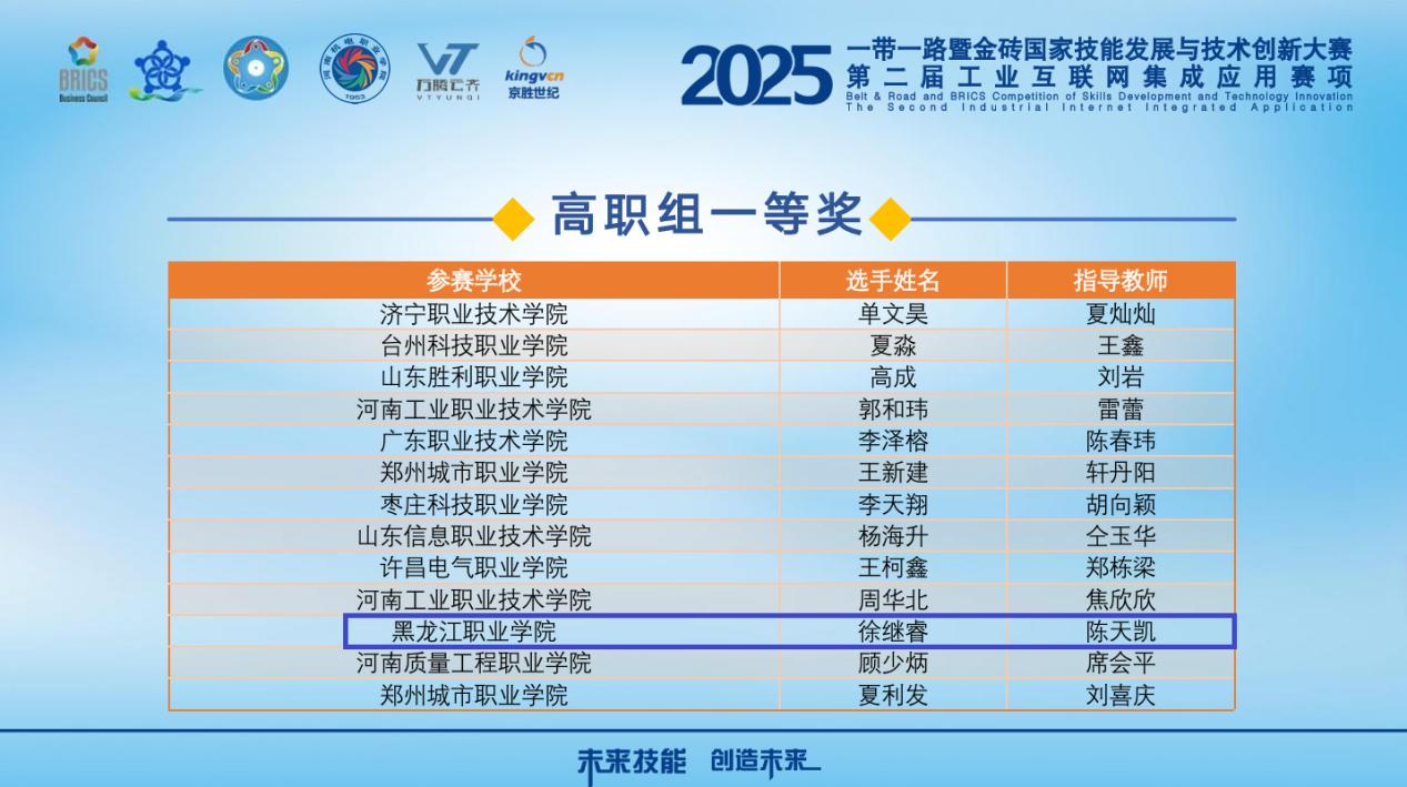 金秋时节,喜报频传。伟德官网智能制造技术学院学生在2025年“一带一路”暨金砖国家技能发展与技术创新大赛第二届可编程控制器系统应用编程和第二届工业互联网集成应用两个赛项喜获“双金”。