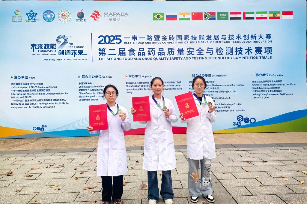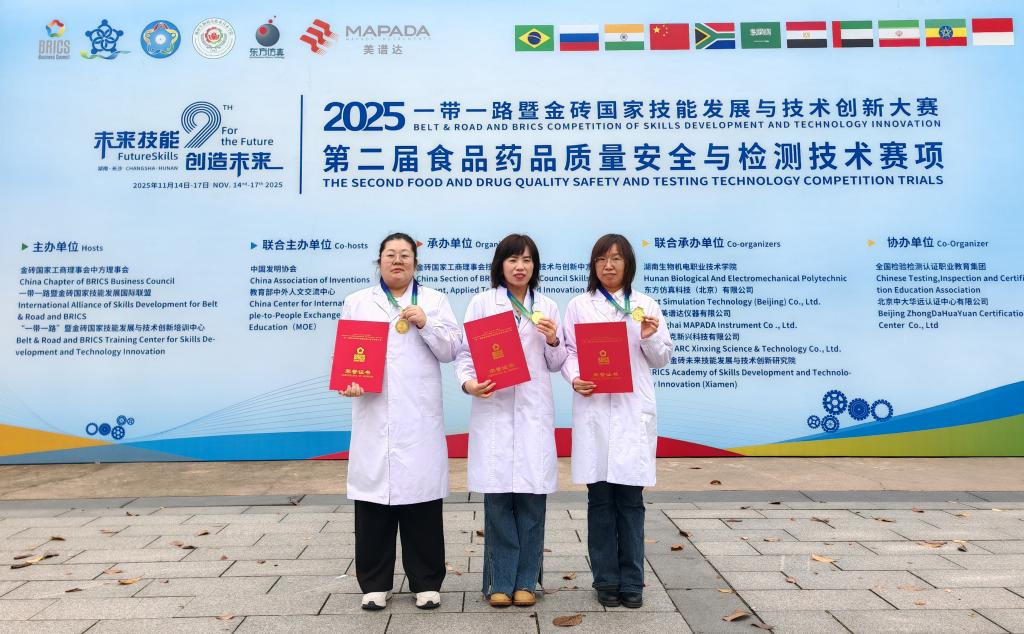 在刚刚落幕的2025“一带一路”暨金砖国家技能发展与技术创新大赛第二届食品药品质量安全与检测技术赛项全国总决赛中,伟德官网食品药品学院师生再创佳绩,一举夺得教师组金奖、学生组银奖,创下我省在该项赛事中的历史最佳战绩。