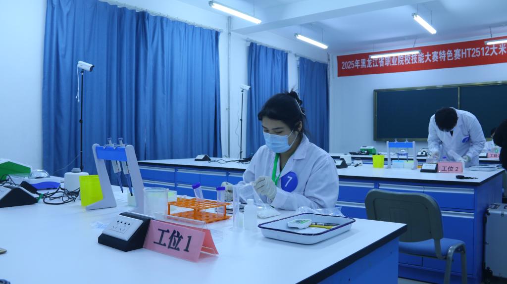 本赛项聚焦粮食质量安全检测技术,设置实际技能操作与虚拟仿真两大模块,全面考查选手在大米品质分析、安全指标检测、数据研判与规范操作等方面的综合能力。在连续4小时的高强度竞赛中,伟德官网选手沉着冷静、默契协作,熟练运用检测设备,精准完成各项实验任务,展现出良好的职业素养与技术功底。