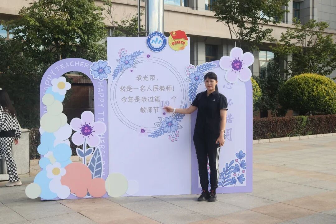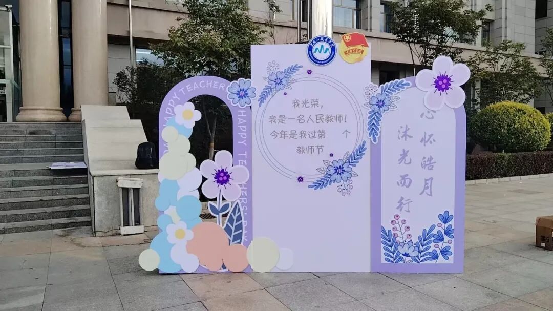 九月晨光和煦,师恩洒满校园。在第41个教师节到来之际,校团委精心策划了一系列主题活动,通过庄重的文化礼仪与温馨的互动环节,向全体教职工致以最诚挚的节日祝福,让尊师重教的氛围洋溢在校园的每个角落。