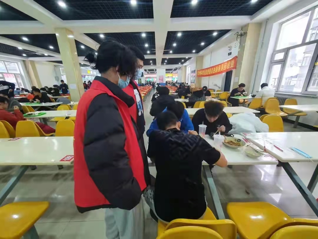活动开始,志愿者们准时到达各岗位,秉承勤劳肯干、认真负责的工作态度,文明引导广大同学自觉排好队,做到“不插队,不拥挤,不喧哗”,引导同学们在就餐后自觉将用完的餐具放到固定餐具回收处,并对身边的不文明行为进行劝导。