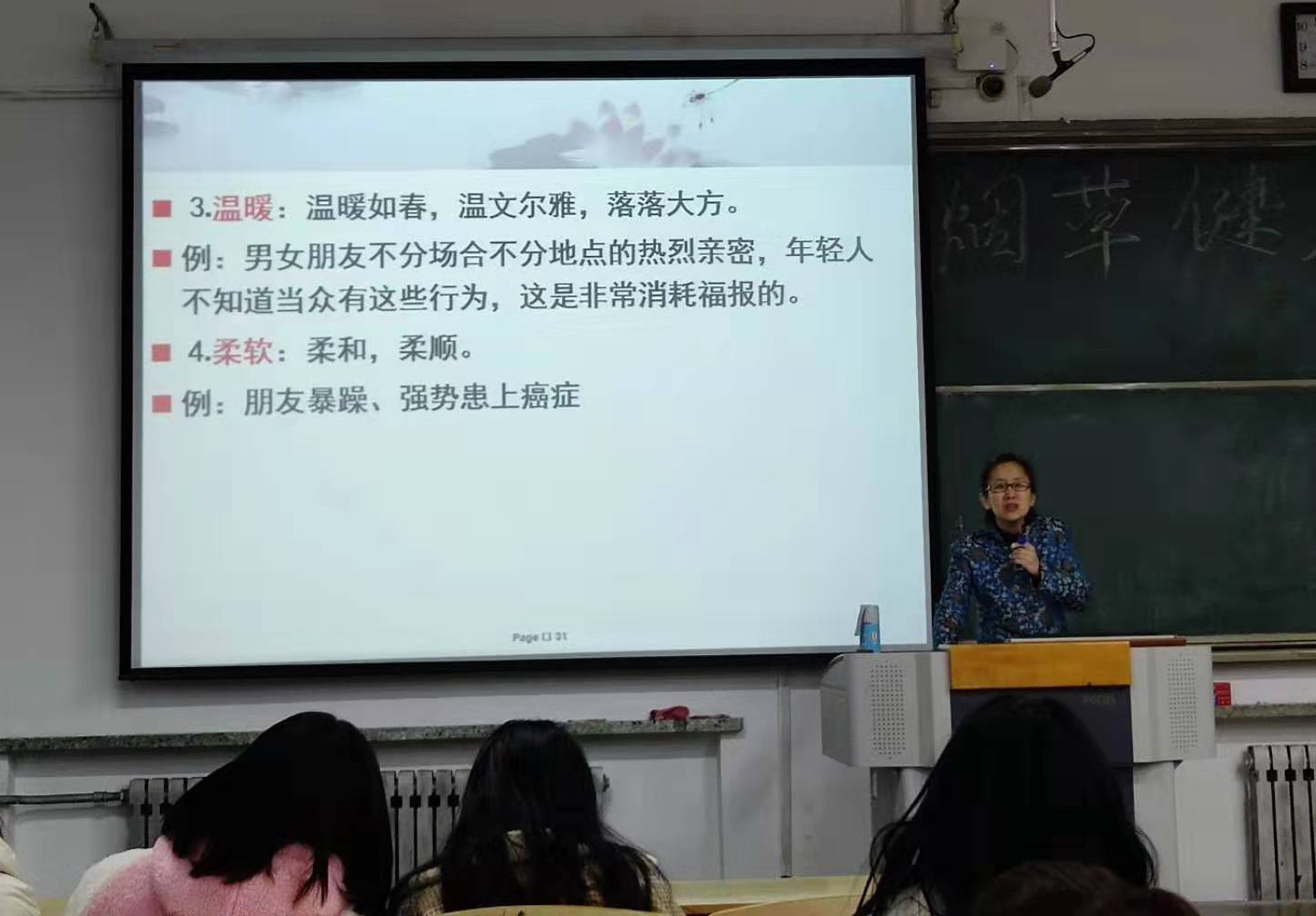 张明霞老师经验丰富,情感真挚,立足于当代社会和大学校园中普遍存在的共性问题,向同学们提出要做到“十德”和“十戒”。