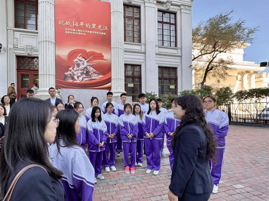 9月18日上午9时,防空警报响彻冰城。东北烈士纪念馆前,参加活动师生全体肃立,为“九一八事变”中遇难的同胞和牺牲的革命先烈默哀。思政课教师杨洋以“九一八事变:民族觉醒的历史转折”为题现场讲授,为学生梳理史实、解析背景。她讲道:“1931年9月18日22时20分,沈阳柳条湖铁路旁的一声爆破,成为亿万中国人命运的共同转折点。”学生焦丽娜表示,虽然与先烈们处于不同的时代,但我们都有一颗相同的报国初心。