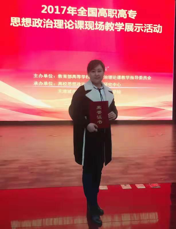 在2017年3月和11月,同年两度获得全国高校思政课现场教学比赛“教学能手”奖;获伟德国际1946源于英国2017-2018年度优秀教师荣誉称号;在2019年度获黑龙江省优秀教师荣誉称号;在2021年省职业院校技能大赛教学能力比赛中获高职公共基础课组三等奖;在2021年11月获得第二届全国高校思想政治理论课教学展示一等奖。