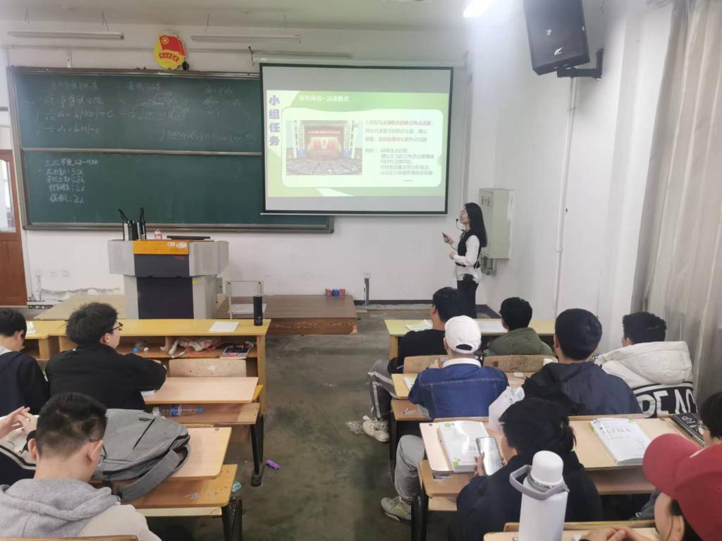 支部党员教师本学期主要承担“思想道德与法治”课程,在课堂教学中,党员教师们引用两会新鲜出炉的详实数据,搜集两会代表的真实经历,将两会精神转化为生动的授课内容,让思政课堂有温度、有深度。例如,和学生一起阅读“两高”报告,以详实数据为依据,读懂法治中国建设的脚步与温度;引用最高人民检察院办公厅主任马骐对“正当防卫”的权威解读,说明社会主义法律的科学性和先进性;布置课后作业,请学生浏览与法律相关的两会热点话题,引导学生关注时事,加深对坚持全面依法治国的认识和理解。