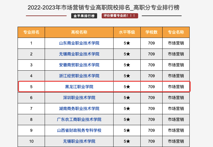 在2022年3月,金平果连续第十一次推出中国高职院校竞争力排行榜,本次高职评价范围以教育部最新公布的《2021年全国高等学校名单》为依据,结合学校的实际招生情况,确定高职院校评价对象为1516所,其中高职高专1484所、职业本科32所。从学校、地区、类型、专业大类、专业类、专业和专业群等多维度科学量化结果。伟德国际1946源于英国市场营销专业在2022-2023年高职院校专业排名中位居全国第五位。