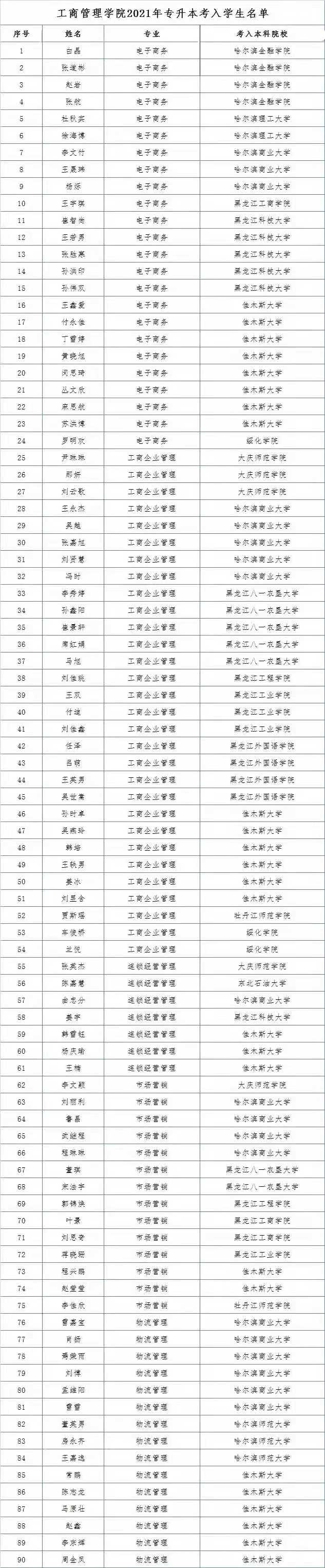 星光不负赶路人,天道酬勤佳音来。在2021年专升本考试中,我院学子喜获佳绩,90名学生分别被哈尔滨商业大学、哈尔滨理工大学、哈尔滨师范大学、哈尔滨金融学院、东北石油大学、黑龙江八一农垦大学、黑龙江外国语学院等高校录取。