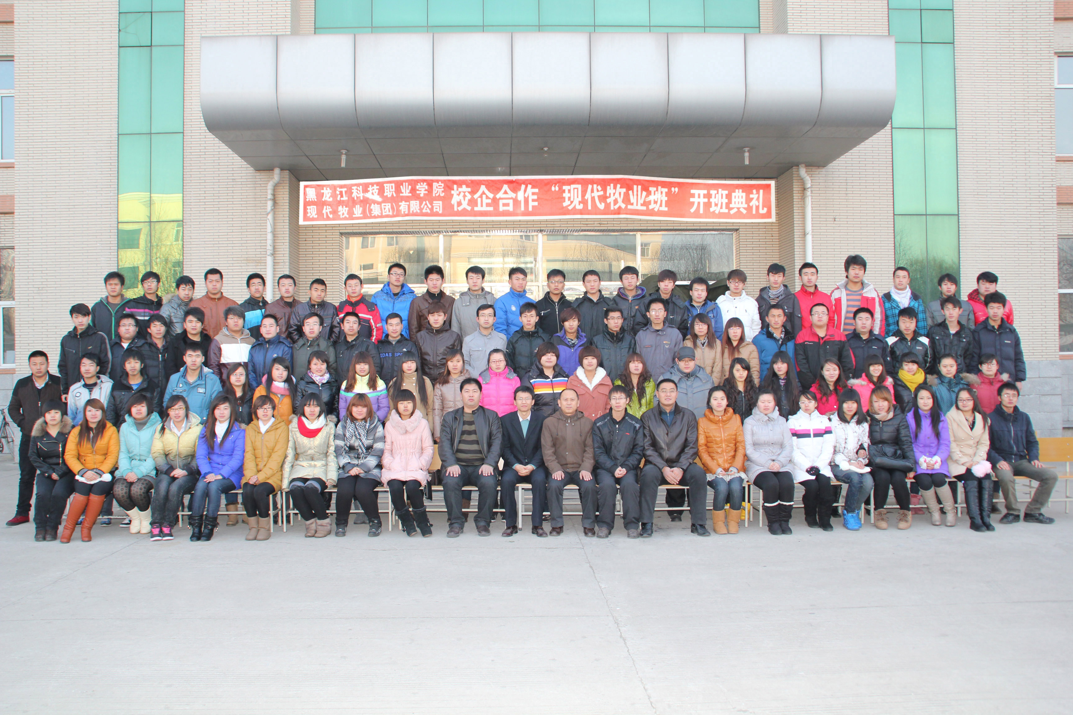 2011年12月1日,集团成员单位----现代牧业集团“就业特色班”在黑龙江科技职业学院正式开班,尚志现代牧场有限公司场长李骁勇、现代牧业集团人力资源中心培训主管朱金龙、黑科职院纪检委书记孙福忠、黑科职院团委书记孙权等领导出席了“现代牧业班”开班典礼。