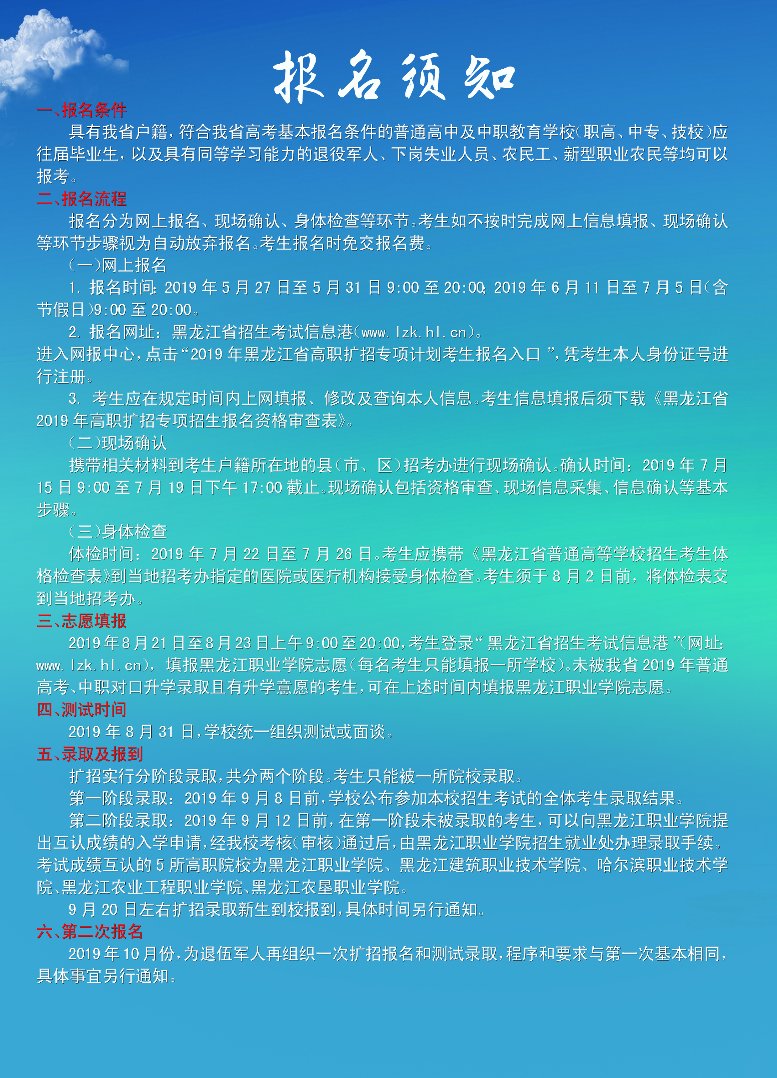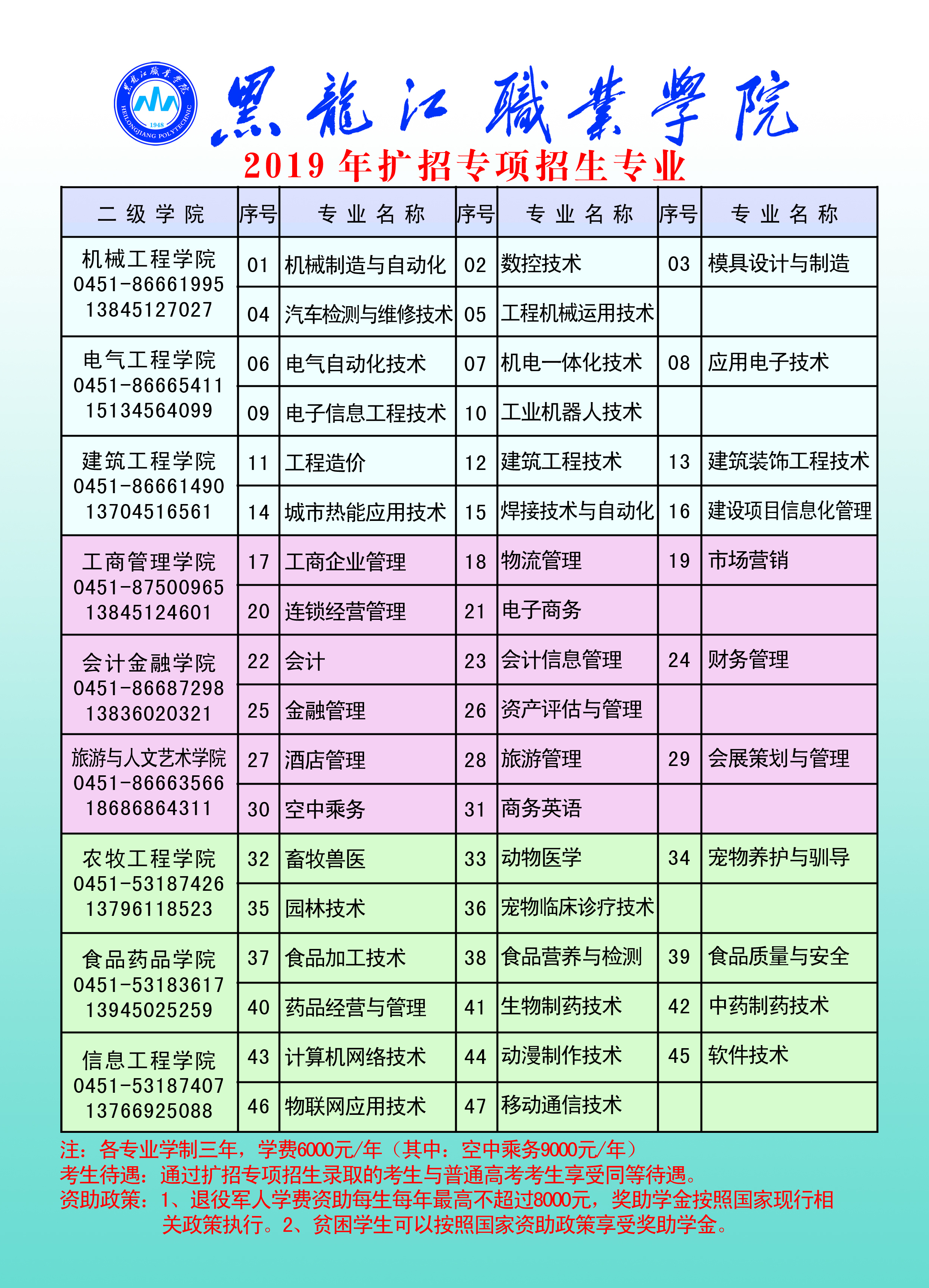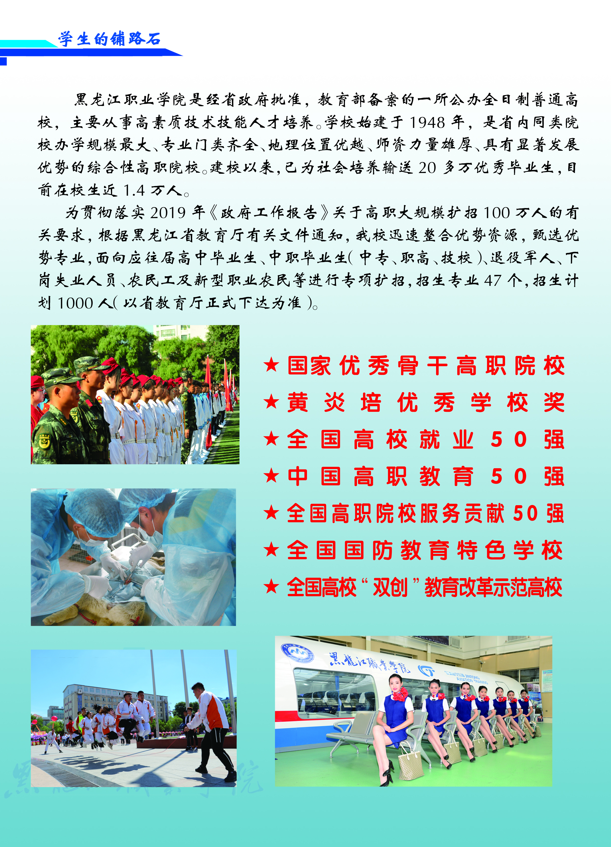 为贯彻落实李克强总理在2019年《政府工作报告》中提出的“高职院校扩招100万”讲话精神,根据省教育厅有关文件要求,伟德官网迅速整合优势资源,甄选优势专业,现对应往届高中毕业生、中职毕业生、退役军人、下岗工人和农民工等人员展开专项扩招。招生专业47个,招生计划1000人。